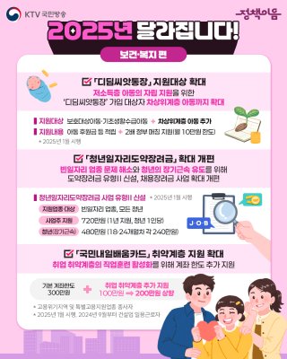 - 청년저축계좌: 매월 10만원 저축 시 정부가 30만원 추가 적립 (3년간 최대 1,440만원)